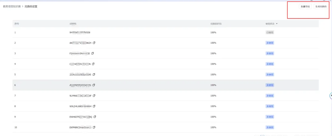 开启了兑换码的,点击知识库右上角,可以生成兑换码,可以导出,也可以复制,手机端也可以打开复制兑换码,还是比较方便的,别人付费了,你给他一个兑换码,如果有自动化成交工具的,导入兑换码,可以设置自动成交成交,玩法还是很多的,根据自己的场景使用。