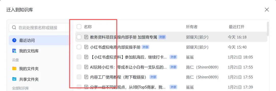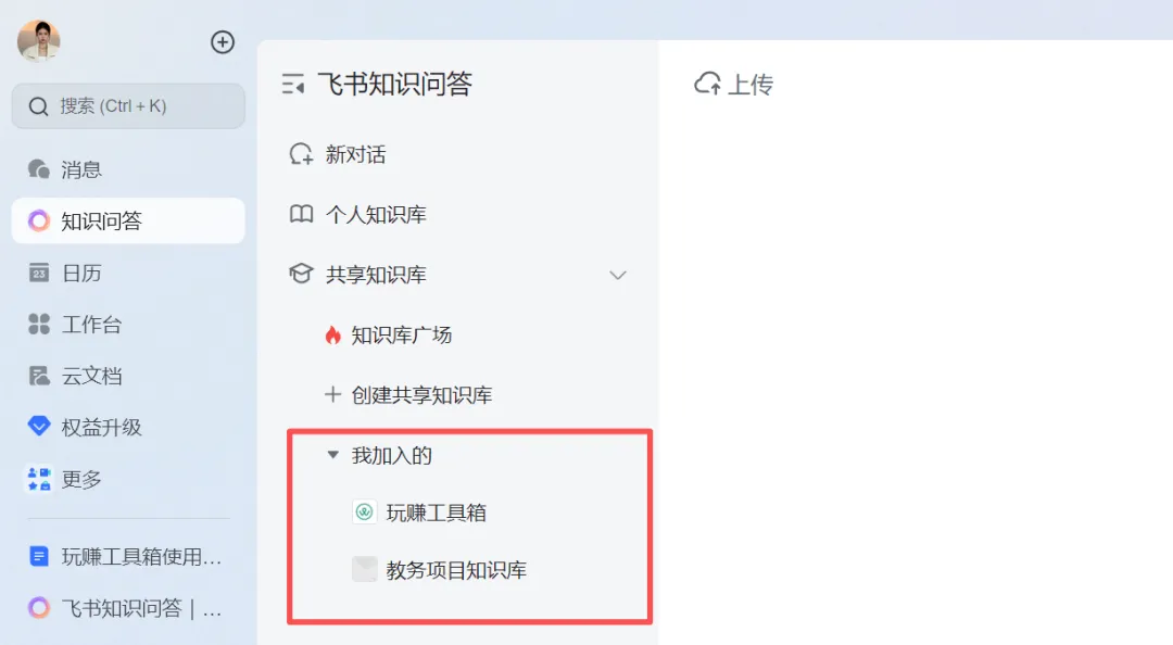 比如你可以整理某个行业的精华文章,打包整理,不过只能整理自己创建的,别人素材无法上传的,只能想办法把别人飞书,其他平台的文档弄过来,上传文档会提供一些破解方法,如何复制别人限制的内容。