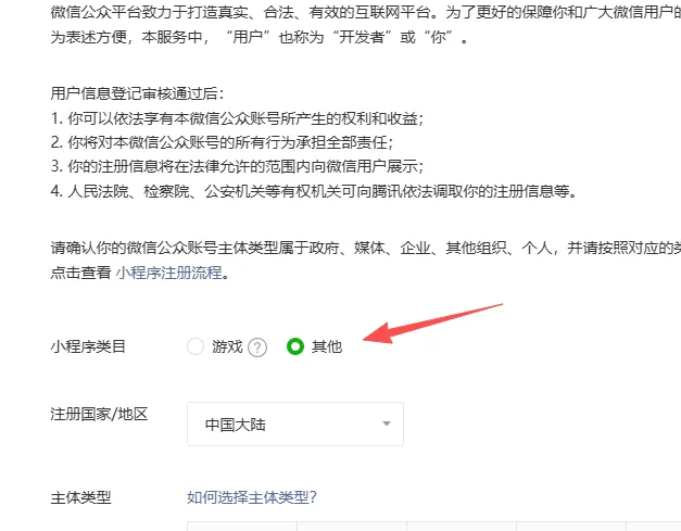 ❖ 注册时,选择其他,不要选小游戏。