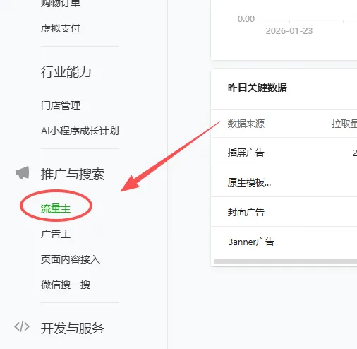 在小程序的后台,推广与搜索中找到流量主。