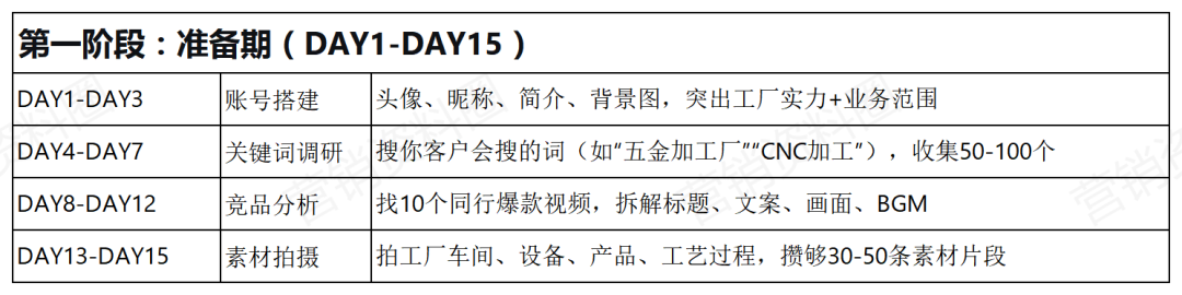 B端工厂或机构类短视频获客短视频账号起号第一阶段:(DAY1-DAY15) 这个阶段的核心是:别急着拍,先想清楚自己要拍什么,表达什么,获得什么…… 会员李总做五金加工的,自己注册了账号,头像是网上下载的握手图,昵称写“李总五金”,简介就一句话“专业五金加工”。 我一看就说:“李总,你这个账号,客户看了敢找你吗?” 头像用网图,像皮包公司; 昵称没有业务关键词,客户搜“五金加工”根本搜不到你; 简介里的15年经验、300+客户,全藏起来了。 这就是第一个注意点:账号搭建别像个路人。 你的账号就是你的线上门头,头像要用老板真人照或工厂大门,昵称要写成“地区加业务加昵称”的格式,简介要把你是谁、做什么、有什么优势、怎么联系,一句话说清楚。 另外就是我们标签词,在这里称之为关键词,这个词的调研别拍脑袋。