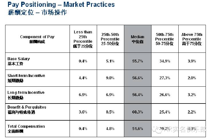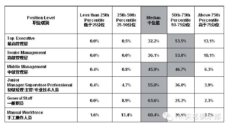 在按照不同级别对薪酬定位时,市场上的普遍操作是中级管理层(包括中级管理层)以下的定位在中位置,中级管理层(包括中级管理层)以上的定位在中位置到七十五分位值之间。