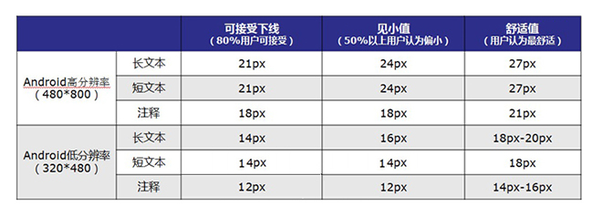 百度用户体验部做过一个小调查, 对于app字体大小的调查结论如下: