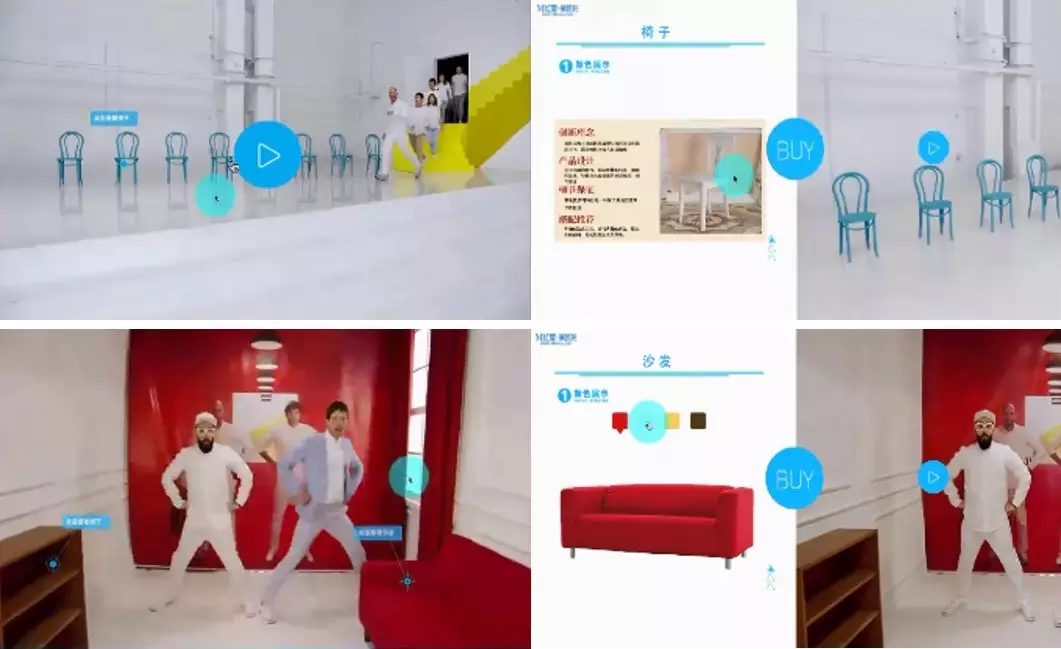 其实基于交互视频,我们还可以有很多丰富的应用,比如结合多屏互动,我们可以通过手机在看电视的时候购物,不需要下载App这种繁琐的过程,只需要扫一扫或者摇一摇就可以实现。