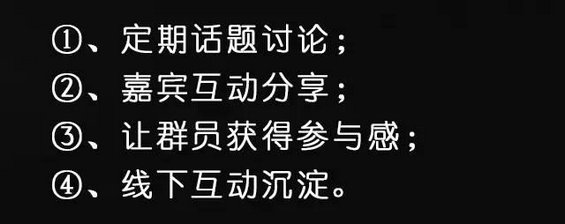 从以上5种动机来讲,不管我们如何建立并开始一个社群的运作,往往最后会变成一湖死水,在获得目的及不甚其扰的情况下,进而退群,但是作为亲戚、朋友、同学的群,即便我们不聊天,也会一直保存下去。 因为亲戚朋友同学群有其感情、记忆基础,这种基础会带给人一种归属感。使得里面的人在脑海里都根植了这类“社群”的概念,而且他们在没有微信QQ之前,一样是社群,他们有同学通讯录,只是微信QQ的群功能,让彼此的交流更为便捷。 有人说一定得亲戚朋友同学群吗?不。像小米之家、吴晓波书友会、罗辑思维会员群等,都有这种归属感,它不多不强烈,但就是让身处其中的你感觉到这是一个圈子,你可以在这里玩耍,也会有人给你回应,可以学习,可以社交等。 所以,我认为一个最为理想的社群是具有归属感的。 三、如何去设置一个社群圈子? 1、明确目标:我们这群人要做什么? 90%的群并没有明确什么目标!比如“互联网资源对接群”、“北上广深同城相亲会”、“全国程序员交流群”…… 很多运营建了这类群,就开始瞎聊了,他们认为,互联网这么方便,人跟人之间可以互相勾搭,加微信,发名片,设置备注名称,然后就自由对接了。然而并没有,除了极少数人在泛加好友外,群员几乎0交流。 并不是人们懒,不愿主动交际。而是在人的潜意识里,对于社交是有心理防线的,当他不了解一个人或没兴趣的时候,当他觉得无法为自己提供价值的时候,为什么要添加呢?但是你会发现,如果群里一个人站出来分享,往往就会被人关注并主动添加,因为大家从他身上看到了价值。 什么是明确目标? 比如一个品牌发起的一场夜跑活动,聚起了一群夜跑爱好者,定时间定场地完成一场夜跑,那么这个群体的目标很明确。 比如一部电影,导演把演员、编导、执行导演、剧务、灯光、宣传策划等人找齐,组了一个100多人的剧组,要在3个月内拍完一部电影,这个目标也很明确。 比如一个诗歌爱好者,找到了学校里面上百个对诗歌感兴趣的同学,组了一个社群,发起早晨8点到教学楼某个位置读诗的活动,这个目标也很明确。 2、设置管理 目标是目标,蓝图是蓝图,愿景是愿景,还是得有实实在在去执行的人,所以设置一个社群,就必须配备管理。 这个管理并非就一个群主,目前社会上还没有专职群主岗位,因为这样投入也不值得,所以大部分都是兼的。 但很多社群往往就设置一个群主,这个时候,创建人就会孤掌难鸣了,群内说话经常没人回应。为什么不设置多几个副的,还有物色几个活跃的?给予物质激励。(注意,一定要有激励,现在的人都很现实。) 比如我自己的诗歌交流群:诗想国(很少朋友知道),2014年末创建,现在有近300人,当然我也没创第二个,群内活跃度尚可。刚开始每周五晚上8点到9点,我会给群员们分享感悟、讲段子、吐槽、发艳照。 后来发现有几个特别活跃的,我就让他们当了管理员,慢慢发现,群里有发小广告,他们都帮我踢了,有谁申请进来,如果不对劲,他们就拒绝了。 当然,现在我已经不怎么管理,打算把群主转出去了。 3、设定规则/培养习惯 当确认一个目标之后,要思考如何开展?并且在开展的过程里,培养用户对社群的基础认知与习惯。 比如某地方商会,在经过几年的管理运营之后,商会成员会知道每月25号有什么活动; 比如一个社团,在经历几年之后,会知道有自己的周年庆、纪念日; ——比如某知名自媒体大号,养了一群女粉丝,每天在群里分享新鲜事、八卦事,这种分享已成习惯,然后这些素材就会成为自媒体的内容输出。 规则是人定的,相信很多群规都会明文规定写着不许发广告、备注地方+职业+姓名、不许私拉人……但大部分群规是废的,久而久之还是有人违规。 因为这些社群除了设定硬性规则外,还没有很好的引导群员认知和培养习惯。如何去设置游戏规则?我认为可以从以下几方面下手: ①、定期话题讨论: 这个话题是什么?我这里没有答案,每个品牌和自媒体的调性都不一样,讨论的自然不一样。但不管什么话题,我觉得并不是说今晚群主跳出来说我们讨论一下“论聂荣恒和吴亦凡的颜值高低”这样就完事的,这样得来的效果反而只有几个人瞎扯。 我认为定期话题讨论应该具备一定的仪式感,比如今天我们预告明天晚上21:00—21:30分将讨论一个什么样的话题,并选取积极发言的给激励,让群员有一定的心理期待与动力。另外,群内的活跃分子和KOL,可以鼓动他们一起参与说两句,对讨论的氛围都会起到很好的效果。 最后,将选取优质的讨论结果整理成文,不管是群内发布也好还是自媒体发布也好,都会形成更大的影响。 ②、嘉宾互动分享 你可以每周或者每月邀请几位嘉宾回来针对某个领域的话题进行分享,比如一家花店的,可以偶尔做做花艺技巧的分享;一家饮品类餐饮品牌,做饮品类调制分享……当然这种分享要定时间、方式(语音+文字),互动答疑等,嘉宾的邀请策略还是看自身的资源,也鼓励从群内挖掘。 在社群营销推广的概念上来讲,嘉宾分享之前,可以做一下相关的推广预告,比如一个针对大学生学习的自媒体,邀请了一位毕业生分享自身的大学经历和感悟,这期间通过在各渠道(微信、QQ群、系里宣传、班级宣传、社团合作宣传、学校官微等)预告推广,积累了大约十个微信群,然后再通过社群小助手等管理技术,让这十个群(5000人)都能截取到嘉宾的分享语音或图像文件等。 通