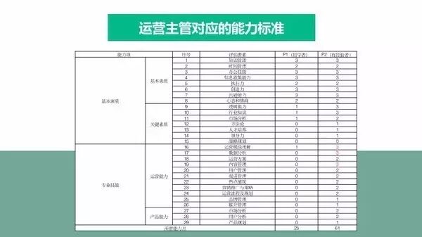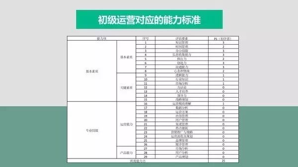 一、先来说一下什么是互联网产品运营 传统企业对运营是这么定义的:运营是对运营过程的计划、组织、实施和控制,是与产品生产和服务创造密切相关的各项管理工作的总称。这个概念很复杂,总结起来就是各项管理工作的总称。这也解释了运营并非像产品经理那般被大家追捧,甚至大多数刚入行的从业者都不太理解运营的缘故所在。 一个产品从计划到正式推出,对应的运营工作往往非常繁杂。从前期准备各种运营计划及提案,到产品上线时的运营方案组织与实施,并对各种推广效果进行有效的监测,这些都是运营人员需要做的工作。再细分一下,从SEO、发布软文、内容的编辑和审核,到产品的种子用户获取、核心用户运营、活动的策划,甚至是部分公关及媒介的工作,都属于运营的范畴。另外,运营跟整个产品的生产和服务是紧密联系的,如果没有产品,也就谈不上运营。总之,但凡有助于产品的用户数据增长,活跃度增加等各项琐碎事情都与运营相关。 二、再来说一下互联网运营的岗位 1)内容运营 内容运营的主要职责是为社区持续创作高质量的内容。不管是社区网站还是问答、视频、电商等网站,都需要内容运营人员,他们的区别只是内容的呈现形态不一样。在社区网站中,内容是帖子;在问答网站中,内容是问题与答案;在视频网站中,内容是视频;在电商网站中,内容则是每一个商品信息。内容是产品的立身之本,也是社区之所以存在的根本。 2)推广运营 如果产品尚在发展中并且主要以免费推广渠道为主,则首先就需要配置SEO专员。因为只有优质的内容还不够,还需要把内容转变成搜索引擎认可的内容,从而才能获得更高的权重,提升内容在搜索引擎当中的展现效果。除SEO专员外,还可以配置软文营销、视频营销、电子书营销、EDM推广、QQ群推广等专员,随着这些渠道红利的缩小、社交网站的发展,以及人力成本的上升,很少有社区会配备如此豪华的营销团队。而是根据产品的属性,选择其中效果最好的营销方式来做推广。自微博、微信诞生以来,运营人员纷纷把目光推向了新媒体运营,即微博运营、微信运营,通过内容策划、活动策划从微博、微信中导入流量,提升整个网站的流量及用户。 3)用户运营 用户运营也是运营团队当中常见的职位。如何增加用户的黏性,让用户更活跃是用户运营人员主要考虑的问题。一般线下的用户运营人员会在网站覆盖的主流城市轮番做活动,带着热心用户吃喝玩乐,“吐槽”产品等。名气大一点的产品还能借此拉一些赞助,成为它们一项持续的收入。而线上的用户运营人员则明显的辛苦许多,除了中秋节和端午节,连妇女节种清明节都得想出一些活动方案让用户感受到节日的氛围,提高社区中的各项数据。这些活动小到签到抽奖,大到策划:双十一”活动,都考验策划人员的想象力与捉襟见肘的预算。至于活动运营、数据运营、营销策划、新媒体运营等岗位,虽然定位和名称不同,但是他们主要负责的事情大同小异。 三、除了我们刚刚说的内容,推广,用户端的运营还有哪些工作? 四、一个初阶运营对应的能力标准 初级的运营如何进阶呢?