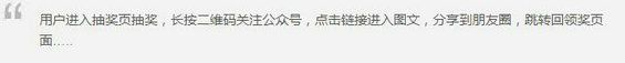 这样的三个特点都使得抽奖类活动在无差别增粉上是一把好手,其路径短、见效快的特点,非常适合与电视台活动同步,起到在节目营造的氛围高峰之下画龙点睛、强化观众心智的作用。 当然,抽奖类互动也有其劣势所在:比如无差别增粉导致粉丝忠诚度较低,活动后的粉丝取关现象比较严重。 游戏类 游戏类 H5 是一种较为深度的 H5,主要优势在于沉浸式体验。这种活动形式的优势是转化率较高,二次传播的转化率也较高,而劣势也较明显:需要较长的准备周期以及研发资源。 显著高昂的成本使得游戏类 H5 难以作为常态化的运营手段。对于电视台而言,沉浸式的游戏 H5,和电台节目本身难以形成配合和互补。 经过思考和讨论后,我们决定本次春节高峰期采用多轮同步抽奖的形式,配合节目的前、中、后期,以固定时间和跨年倒数为单位,共计 5 轮抽奖。抽奖需要关注公众号,以此来达到涨粉的目标。 流程引导和用户路径设计 活动流程引导是一个活动的核心。目标能否达成,效果如何,主要依靠的是流程是否清晰、明确。流程太长,用户最终转化率低;流程太短,往往难以达到我们想要的目标。这就需要策划活动时对“用户路径”的斟酌,尤其是从用户的角度去考虑活动的吸引力、参与的场景,最终达到一个较好的平衡。 本次活动的目的主要是公众号涨粉,其次是希望提高用户和观众的活跃,也就是参与度。在这样的情形之下,用户路径就不能设置的过长。 举例而言: 以上的套路实际上非常好用,但更加适合的是以“涨粉、二次传播”为目标,同时奖品要更具有吸引力、有验证兑奖环节的类型的活动。 综合考虑后活动引导流程偏向简单,主要是为了提高参与度,测试用户习惯(当然也有因为尚处于尝试阶段,没有全力铺展开、合作的商户尚且不够多的原因)。 1. 电视直播/录播时在屏幕上打出公众号二维码。 思路分析:在主持人的推荐和节日气氛鼓动下,第一个二维码扫码转化率肯定较高。因此直接放公众号二维码,可以获取最大程度的转化增粉 2. 观众扫码后关注公众号,弹出自动回复,也可以点击菜单参与抽奖 考虑到新用户和旧用户都有一定的比例,仅仅是关注后自动回复抽奖是不够的,还需要设置抽奖菜单。 另外抽奖菜单也可以起到一个简单的预热作用:每天查看公众号的用户都知道了在春晚会有直播抽奖,会多一分期待 3. 进入抽奖页面 抽奖后的行为我们考虑斟酌了很久,本可以设置分享到朋友圈再抽一次这样的强力增粉的套路,但营销顾问建议不要在春节的时候做有一定风险(被用户投诉、微信可能会封域名)的活动,主要考虑是机会成本较高。一旦被封了,尽管平台可以提供解封域名的高级服务,但在解封的期间,会对参与活动的用户造成很大的负面影响,甚至产生糟糕的口碑传播。故最终还是设置成比较简单的领取方式,直接通过公众号发红包。 4. 输入主持人口令,参与抽奖。 增粉抽奖的方式很多样,最简单的一般为:关注公众号->回复特定关键词->弹出抽奖链接->完成抽奖的形式,一定程度上保证用户需要关注公众号才能抽奖。但是依然有空可钻:用户直接将抽奖页面分享出去,其他用户便可以直接抽奖。其中一个解决办法是:设置分享出去的页面为活动页,活动页会说明需要关注公众号获取抽奖链接。 而上述的抽奖方式更适合较长期的活动,晚会抽奖讲究气氛。什么是气氛?一起进行某项活动,这就有了仪式感和节奏感。因此这里后台设置为“口令抽奖”,需主持人公布口令后,才能进行抽奖。 5. 红包奖品由公众号派发;优惠奖品关注商家公众号后领取 红包直接通过吉林卫视公众号进行派发,用户可以看到红包记录,减少取关的比例。优惠券派发较少,为10%的比例,主要是测试用户的转化率。实际上由于优惠券均为本地商户优惠券,用户接受度和转化率都比较高。抽中优惠券后,长按带参二维码关注商家的公众号,商家自动发放优惠券。领取后可以在本地的线下服务消费。 抽奖活动的细节技巧 1. 抽奖活动时间 一般而言,抽奖的轮数越多越好,多次少量,尽可能让所有的用户都有奖品是最重要的活动技巧,否则可能得不偿失。在直播的抽奖活动中,分多批次有利于不同时间段观看节目的观众互动抽奖,增加覆盖面。 别忘了:抽奖本身不是目的,目的是让尽可能多的观众用户参与互动,参与到节目中来。但是过多轮数的抽奖也会减少抽奖对于用户本身的吸引力,故抽奖的轮数设置在 3-5 轮为佳(恰好配合节目)。 2. 抽奖的具体形式 抽奖活动的形式使用“摇一摇”,虽然平台可以设置 11 种抽奖的形式,包括”大转盘”、”老虎机”、”跑马灯”、“摇一摇”等经典的抽奖形式,但是我们最终决定选择了摇一摇。 关于不同的抽奖形式,可能很多朋友会有一个误区,觉得只是形式有所不同,区别不大,选择喜欢的就好了。而实际上并不是这样,大转盘、老虎机和跑马灯,作为 3 个典型性的抽奖类型,有各自的优点和特色。为什么选择摇一摇的抽奖形式,主要的优势有几个: