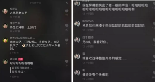 很有意思,这一点上抖音和微博非常像。 我眼见着抖音从狙击手文化(看跳热舞小姐姐底裤的颜色),变成欢迎收看《XXX》系列,到现在的过山车大军和赤赤大军。