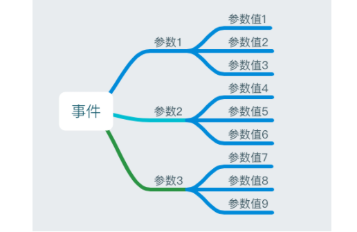 举个简单的例子,电影播放平台上,当用户点击“播放”电影时,这里可以为一个事件。出了统计这个事件发生的次数之外,我们还可以收集到这一次播放的电影类型、地区; 其中,参数就是类型、地区。类型下对应的参数值就有:喜剧、爱情片、科幻片等等;地区下对应的参数值就有:欧美、日本、韩国、大陆等。 这样,就可以统计到,点击播放按钮到次数中,点击频次最高的是什么类型的电影、出自哪个国家的。