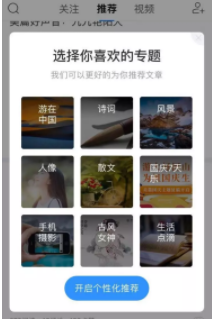 如下图,可以选择喜欢的分类以开启个性化推荐。另外,在长期使用产品后,后台也可以更精准的投放内容。