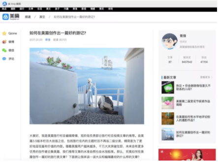 除此之外,为了指导用户生产优质内容,美篇的旅行栏目编辑青锋甚至在官网上发文,“手把手教你上精选”,真是业界良心。