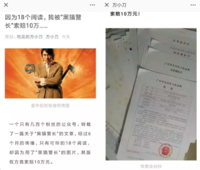 前几天,公众号“万小刀”发布了一篇《因为10个阅读,我被“黑猫警长”索赔10万……》的文章,讲述了自己因为曾经使用了“黑猫警长”图片被上海美术电影制片厂索赔十万的事情,让自媒体版权问题再次公之于众。