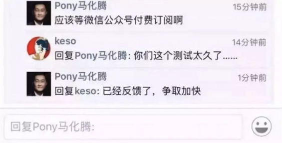 4. 微信知识付费订阅产品,这却是微信内部研发过的一个业务,2017年2月14日,互联网大V Keso在36氪平台上线了自己一款知识付费专栏,马化腾在其朋友圈底下评论: