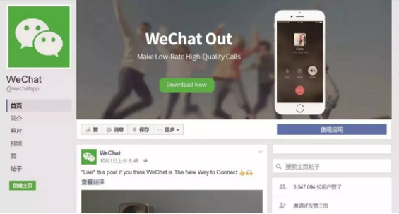 微信的Facebook主页一旦关系链建立,马太效应就开始发挥作用,人们不会去用一个功能强大但我的朋友们都不用的产品,“撼山易,撼关系链难”。