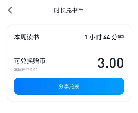 然而用户可以参与分享活动免费获得阅读时长,另外,购买图书的读书币也可以通过阅读时间免费兑换。