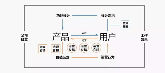 其次,如果是要套用到二者工作的对象上,则变成:产品设计作用于产品,体现在用户身上;产品运营作用于用户,体现在产品身上。
