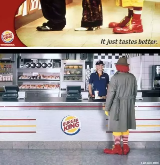 比如之前汉堡王的一个经典广告,连麦当劳叔叔都无法拒绝美味,乔装打扮来买汉堡王。冲突很明显,也构建了戏剧性的反差,可以说是一个举世闻名的广告了。