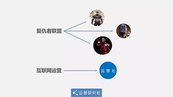这就好比,你看到复联,就会想到钢铁侠、美队;看到互联网运营,就会想到运营研究社。这就是惯性思维在左右我们的想法,让我们优先想到一些固定搭配的事物。
