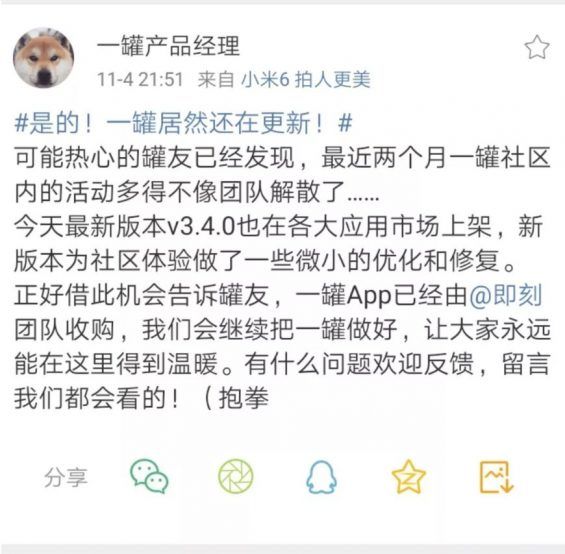 还有一些社交和兴趣社区混合的小众产品,比如苏打和一罐(刚被即刻收购),整体而言也是不温不火。