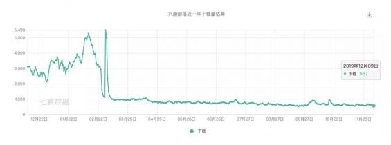 2014年从QQ独立出APP的兴趣部落,在一段时间的喧嚣后,这两年没了声响,通过下载量预估可以看到兴趣部落活得并不好。